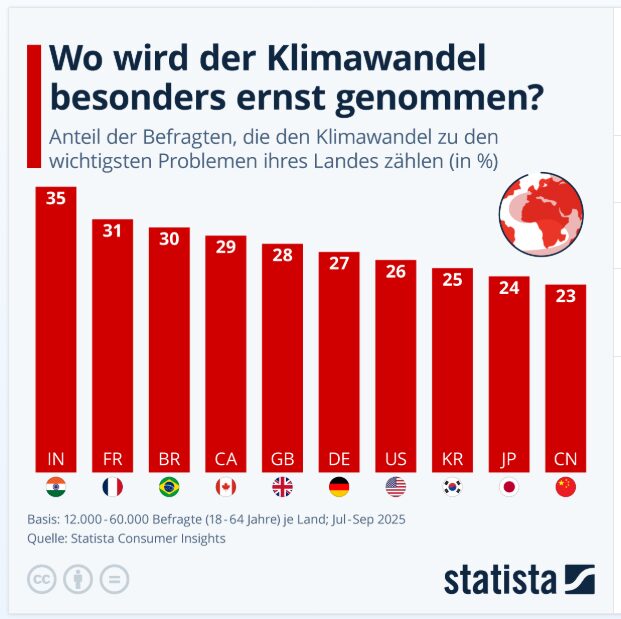 In welchen Ländern wird der Klimawandel besonders ernst genommen? Statista-Umfrage