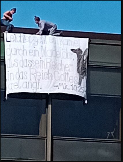 Banneraktion auf dem Landtag: Leichter geht ein Kamel durch ein