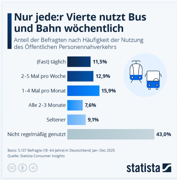 Der ÖPNV hat ein Image-Problem / Nur ein Viertel der Deutschen nutzt Bus & Bahn wöchentlich ...