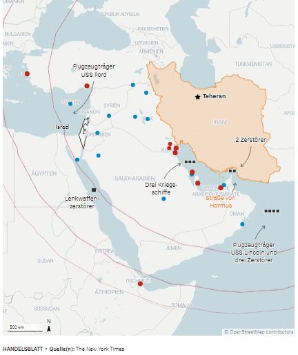 Experten: Etwa ein Viertel der Flüge nach Nahost annulliert - Daten des Analysehauses Cirium zufolge sind rund die Hälfte aller Flüge nach Katar und Israel gestrichen worden, bei Kuwait seien es 28 Prozent. Insgesamt seien knapp ein Viertel der Verbindungen in den Nahen Osten annulliert worden. Die Region ist ein wichtiges Drehkreuz zwischen Europa und Asien, das wegen der Sperrung des russischen Luftraums infolge des Ukraine-Kriegs zuletzt noch an Bedeutung gewonnen hat. Dubai International ist gemessen am Passagieraufkommen inzwischen der größte internationale Flughafen der Welt.