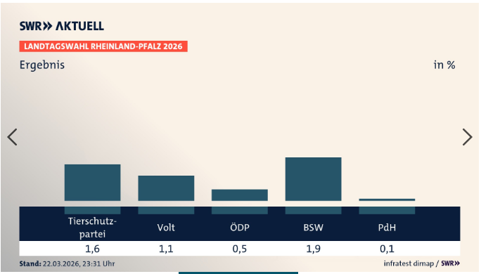 Die sarkastische Zuspitzung, dass die SPD zur „Ämterschutzpartei“ verkommt und wahlpolitisch marginalisiert wird, ist eine Warnung vor dem Ende der politischen Relevanz. Wenn eine Partei inhaltlich entkernt und organisatorisch selbstzufrieden wird, droht langfristige Bedeutungslosigkeit. Die rhetorische Zahl von 1,6 Prozent (Tierschutzpartei, siehe Grafik) steht nicht für eine Prognose, sondern für das Risiko, dass eine ehemals gestaltende Partei zu einer verwaltenden Institution schrumpft. Diese Zuspitzung soll wachrütteln: Es geht um Substanz, nicht um Pfründe.