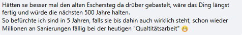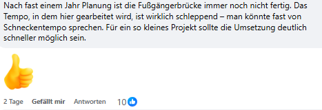 Und die - von mir so benannte "Wangener Brücke" - hat nicht nur im Vorfeld ordentliche Kritik-Risse bekommen, sondern wird ganz aktuell im Internet mit Häme bedacht: