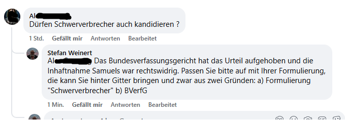 Und schon wird auf "schwaebisch.de" auf Facebook gegen ihn polemisiert, gehetzt, verunglimpft und (nach meinem Dafürhalten) strafrechtlich gegen ihn gepostet. Man/frau ist von Ravensburger Mitbürgern ja schon einiges gewohnt, aber das hier geht zu weit: