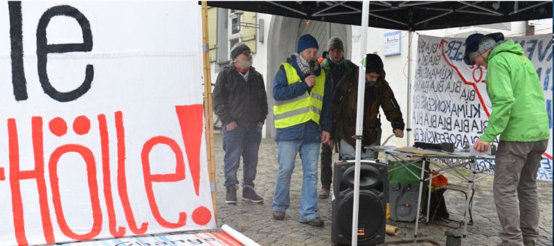 Klima-Kundgebung zur OB-Wahl in Ravensburg am Samstag, 21. Februar 2026Ravensburg - Vor einem gespannten Großbanner, mit der Aufschrift