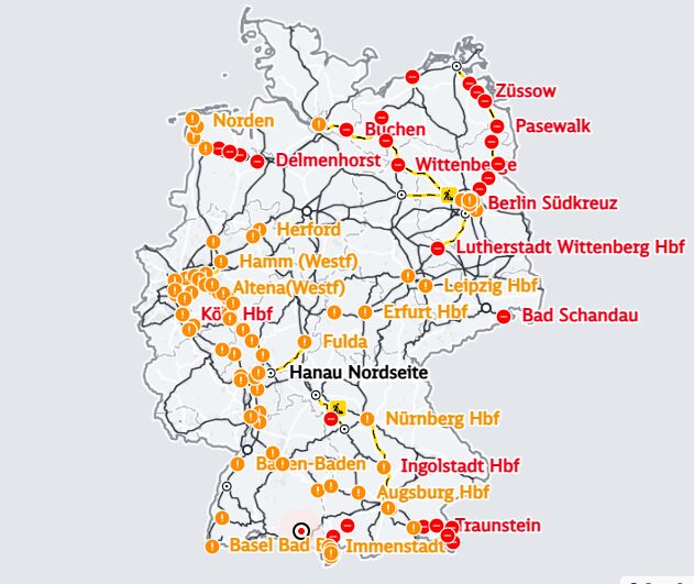 Außerdem gibt es eine AKTUELLE STÖRUNGSKARTE der Deutschen Bundesbahn unter diesem Link.